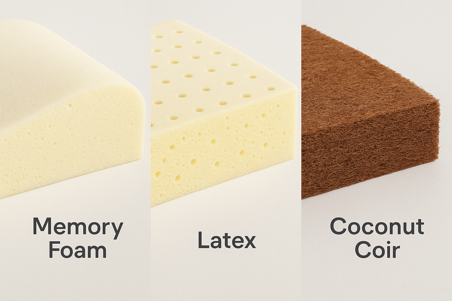 Современные топперы изготавливаются из различных материалов: латекса, мемори-фоам, кокосовой койры и синтетических наполнителей. Каждый материал имеет свои особенности и подходит для конкретных задач: мягкость, упругость, точечная поддержка или долговечность.